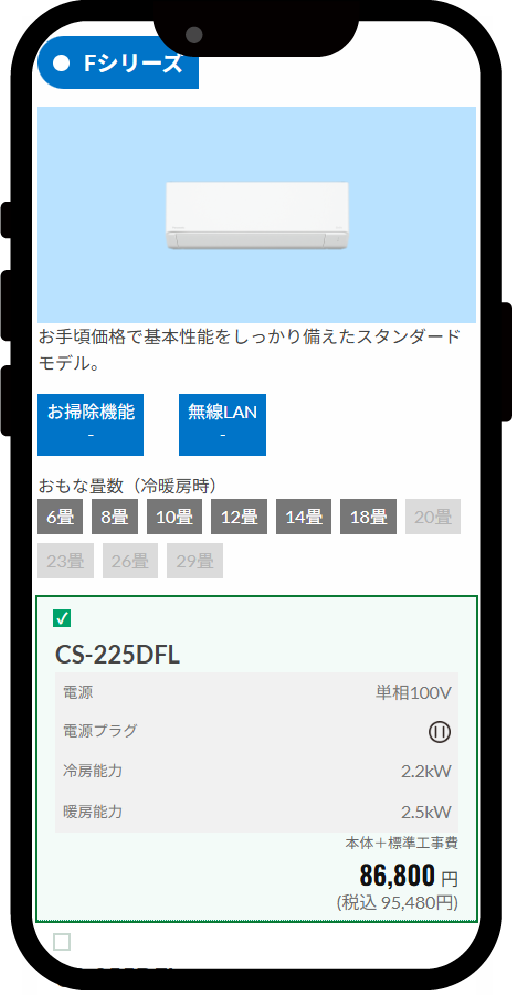 | 既存エアコンの型番 | パナソニック:〇〇-〇〇〇 |