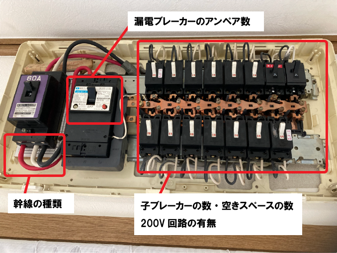 | 主幹容量アンペア数 | 40A、50A、60Aなど |