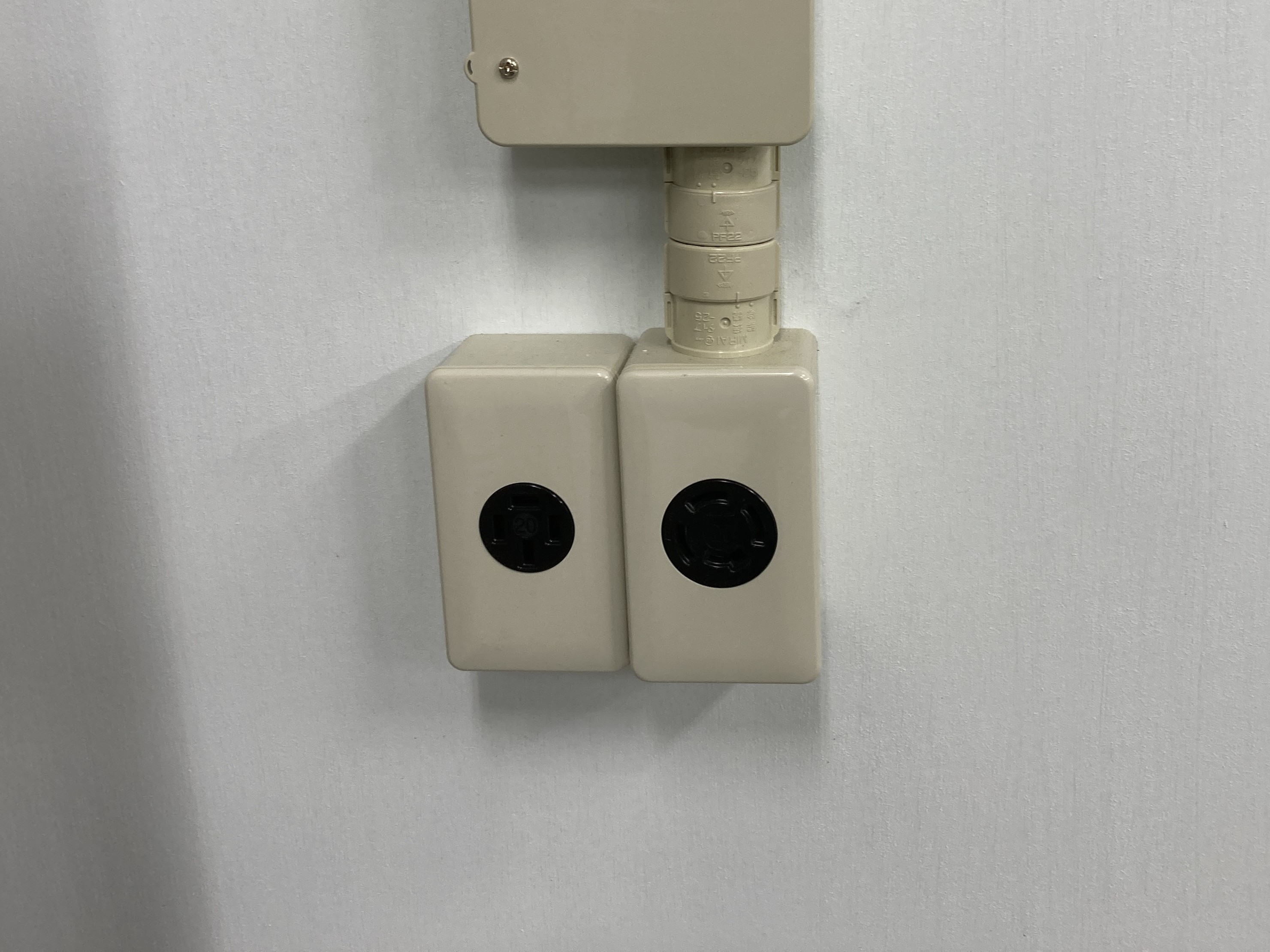 経年劣化により不具合を起こしていた動力コンセントとスイッチの交換工事